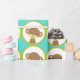 Papprare med en upprepande mönster av en söt baby-apa med nappar i munnen Inuti en oliv grönt cirkel. Sätt på en grönblå bakgrund.