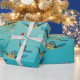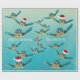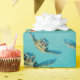 Havsköldpaddor i simman i blått hav, och vissa har till och med jultomtar i roligtens helgdag.