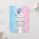 För en babydusch för både en gir från pojke och baby. En blå vit och rosa övertoningsbakgrund. Dekorerad med glitter och blått, rosa och vita ballonger och glitter stoft. En pojke-elefant och en gaby-flicka-elefant. Anpassa och lägg till namn i mamma och party. Namn och texten: Boy eller Girl är skriven med ett handskript i stil