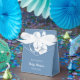En dammig blå bakgrund med vita ballonger. Anpassa och lägg till namn och datum.