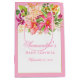 Chic och glatt babyduschpresentväska med en rik av blommor, knoppar, kvistar och löv. Rosa, koral, grönt, orange, lila. Shock rosa. Teckensnittskombination, skript och klassisk elegant. Rosa bakgrund. Festiv, chic, elegant, klass. Perfekt för blommigt eller rosa babydusch. Artwork based on vintage blommigt card of 1800.
