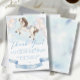 Ett hätsktemat tackkort med en illustration av en underbar baby-pony och Watercolor-sagans-guld-stjärnor med pastel färg-ballonger och blått band för att få slut på firande!