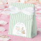 These charming baby shower Favor Boxes feature a delicate vintage watercolor illustration of Mother Goose and Gosling, creating a warm and touching story of love and care. The delicate image is framed in an elegant oval border and set against a classic pastel green striped background, inspired by timeless nursery designs and fairy tales.
