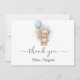 Share your appreciation with this adorable Baby Shower Thank You card, featuring a blue balloon, a cute teddy bear, and an elegant bow design that brings warmth and joy to your message.