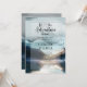Låt äventyr börja kallvattenfärgningen babyduschinbjudan med skog och sjö, vildmarkslandskap, med kalligrafi-manusskrift. Eteal och magisk.