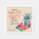 Den här pappra babysknappen "TWO-TTI FRUTTI" har färgad frukt med trendig: ananas, vattenmelon och ett segment av orangen. Färg arbetar underbart för en könsneutral babydusch. Med anpassningsbar kan du lägga till namn i mor och hennes duschdatum.
