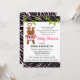 © 2012 Socialite Design. Rosa med svart zebra ränder och söt liten apa... -...skjut barn. Ett charmerande inbjudan att skicka till gästerna för att fira ett flicka kommande födsel.