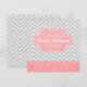 Klassisk och elegant grå och vit chevron-mönsterbakgrund. Rosa fästpunkt ram med stygn effekt för att indikera barnets namn. Denna attraktiva inbjudningskort med sina pastellfärger är idealisk för alla som planerar en baby shower eller behöver ett meddelande för ankomsten av en nyfödd bebis. Designen är lämplig för babyflicka. Inbjudningskortet kan enkelt anpassas till din fest detaljer. Designad av Rusty Doodle.