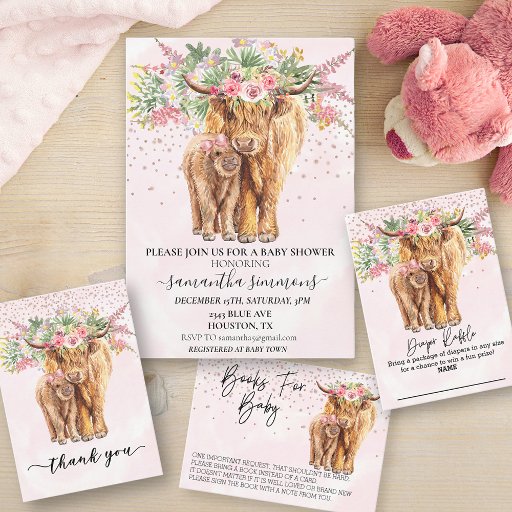 Pink Floral Highland Cow Baby Shower Designad av Color Flow Creations
