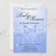 Babyduschinbjudan till en pojke i direktuppspelning av molnblått färg med ett band och en båge.