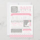 En söt baby shower-inbjudan för en babyflicka. Söt liten elefant och fågel, med chevronränder, cirkusaffischtema och söt typografi!