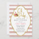 Inbjudan till babyskor i Krona Guld & Rosa Modern Rand.