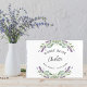 En vit snyggt som dekoreras med violett lavender-blommor och eukalyptus greenery. Anpassa och lägg till ett namn. Rygg: lägg till din egen text.