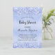 För en babydusch, fira en pojke. En ljusblå bakgrund. Dekorerad med konetti. Mallar för närmare uppgifter om namn och party i mamma. Namn och texten: Baby Shower är skrivet med ett handskript i stil
