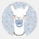 Söta babyduschklämmor, partimärkningar och kuvertförseglingar för tillkännagivande för födelse eller dusch inbjudan med lite lama med nappar.