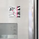 En babyduschmagnet med bakgrunden zebra tryck. Den lämnat sidan är skisserad i rosa med en illustration av ett zebra tryck-paraply med rosa båge. Texten som hänger från paraplyet lyder "Baby Shower". Leta efter matchande inbjudningar till Rosa Schoolhouse.