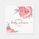 Baby Shower-Pappersservett har bra vattenfärgspeonier, mjuka rosa blommor och emerald löv.