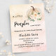 En övertoningsbakgrund i ro guld och rosa, dekorerad med en färgad och blommor. Anpassa och lägg till uppgifter om namn och party. Text: Lite Pumpkin är på väg.