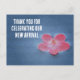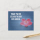 Tacka era gäster hem med personligt tackkort med en rosa blomma och blått vatten. Anpassa enkelt och snabbt all text för din speciella fest. Baksidan har en enfärgad yta med gott om utrymme för ytterligare text eller foton.