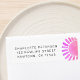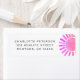 Denna sol-tema baby shower returadress är dekorerad med en rosa akvarell sol.