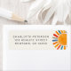 Den här sol-temade returadressen för babydusch är dekorerad med en färglös vattenfärg sol. Enkelt anpassade. Ursprunglig vattenfärg © Michele Davies.
