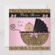 Söt Baby Shower Baby Flicka Rosa Svart Leopard Barnvagn Pärlbroderi Pärlbroderi Band Rosett inbjudan,