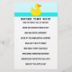 Unik baby shower-spelaktivitet med söt gummiankkonst, en frågesport om Mother Goose-barnramsor och en plats för föräldraråd.