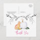 Ett charmigt tacksamhetskort för baby shower har en akvarellpumpa med en skogsräv och botanisk lövverk. Personifiera med din information på baksidan. Perfekt för en flicka baby shower. Utforska mer från detta charmiga räv- och pumptema på https://www.zazzle.com/collections/fall_themed_woodland_fox_and_white_pumpkin-119146221281062653