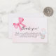 A thank-you card showing a pink watercolor bow and soft pastel baby elements, designed to thank guests for attending a baby shower for a baby girl.