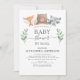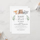 Skogsdjur - Björn, tvättbjörn, räv eukalyptus grönska botanisk akvarell vår könsneutral baby boy eller baby girl baby shower via post inbjudningar på vit bakgrund - inkluderar vacker och elegant script typografi med modern botanisk blad och grönska för den speciella blivande mamman firande.