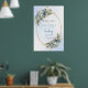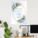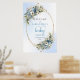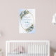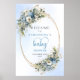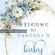 This elegant baby shower welcome sign features soft watercolor dusty blue flowers, lush eucalyptus greenery, and delicate gold accents for a refined, modern look. The gentle pastel tones and flowing script lettering create a warm, inviting atmosphere perfect for celebrating a little one on the way. Designed in a boho‑inspired style, this digital porch sign or poster adds a sophisticated touch to your entryway or event space. Easy to personalize and download, it prints beautifully with crisp details and rich color. A stylish, timeless choice that complements any blue or neutral baby shower theme.