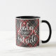 En snyggt julhelg mugg med elegant-skript baby är kallet utanför citattecken på en tartan bakgrund.