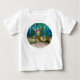 Den söta baby-sjöjungfrun på en blå fantasybakgrund
