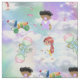 En upprepad utformning av trendigets regnbåge, moln, gnistor och lekkamrater i multifärgad och leksaker för en baby fram till dagens sovrum.