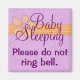 När du äntligen får din lilla att sova, så kommer någon och ringar på dörrklockan...Och vaknar upp baby! Detta söta lilla magnetmärke kommer att göra det möjligt för besökare och leverantörer att veta att det finns en baby som sover och det skulle uppskattas om de inte gjorde ring i klockan. Det är en magnet, inte ett permanent tecken, så man kan bara placera det på ytterdörren när det behövs. Det här skulle vara en unik babyduschgåva!