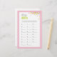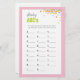 Baby ABC-spel är en roligt för vilken babyåkare som helst, eftersom gästerna försöker fylla i korten med baby-artiklar som börjar med varje brev i alfabetet. Kortet kommer in i ett rosa färg-system med färgstarka konfektyrer. Perfekten som tillägg till en babyåkare eller Baby Sprinkle party! Hitta andra spel och matchande objekt på www.zazzle.com/mypartydesign