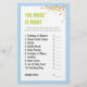 Det Prisa är att Högerna är en roligt för vilken babyåkare som helst, eftersom gästerna försöker gissa prisa för ett urval av baby-artiklar. Kortet kommer i ett blått färg-system med färgstarka konfektyrer. Perfekten som tillägg till en babyåkare eller Baby Sprinkle party! Hitta andra spel och matchande objekt på www.zazzle.com/mypartydesign