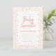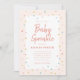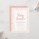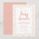 En fantastisk baby sprinkle baby shower inbjudan med regnbågsfärgade sprinkles-kant på en rosa bakgrund.