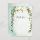 Skriva tackkortet på den här vackra blommigten vit ros i elegant på gröntens vattenfärgbakgrund.