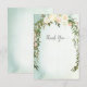 Skriva tackkortet på den här vackra blommigten vit ros i elegant på gröntens vattenfärgbakgrund.