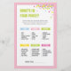 Spelet What's in your Purse' (Vad är i ditt Purse) är en roligt-aktivitet för vilken babyåda som helst. Kortet kommer in i ett rosa färg-system med färgstarka konfektyrer. Perfekten som tillägg till en babyåkare eller Baby Sprinkle party! Hitta andra spel och matchande objekt på www.zazzle.com/mypartydesign