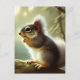 Ett vykort för vilt-älskare, med AI, gav en digital målning av en söt baby-ekorre på ett skogsområde träd gren.