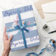 Baby Stork Wrapping Paper Blue & White Stripe Presentpapper