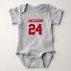 Klänning din lilla fan i laganda med denna personliga baby bodysuit eller småbarns t-shirt! Lägg till ditt barns namn och tröjnummer för att skapa en mini matchdags outfit som matchar hela familjen. Använd designverktygen för att anpassa färgerna för ditt favoritlag — perfekt för fotboll, basket, baseboll eller någon annan sport. Gör en bra present på baby shower eller fotoprop för matchdagen!