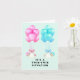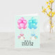 Kreativets twillingar- och flickkort med rosa- och blåballonger, twin flicka och pojke och lustig linje. Så här anpassar du redigeringstext.