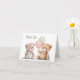 Tvättfärgsflicka och pojke två nallar med ballonger på vitt för baby-gåva tack. All text kan redigeras.