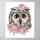 Baby Uggla Rose Djur Affisch | Väggutskrift