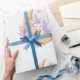 Baby Unicorn över Måne med blommande Pa Presentpapper