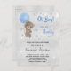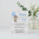 Babydusch nalle boyblå silver inbjudan vykort
