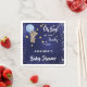 För en babydusch som firar en pojke. En blå bakgrund. Den blå färg är ojämn. En nalle med blå ballong, gult stjärnor och faux glitter-gnistor. Anpassa och lägga till namn i mamma till att bli medlem.